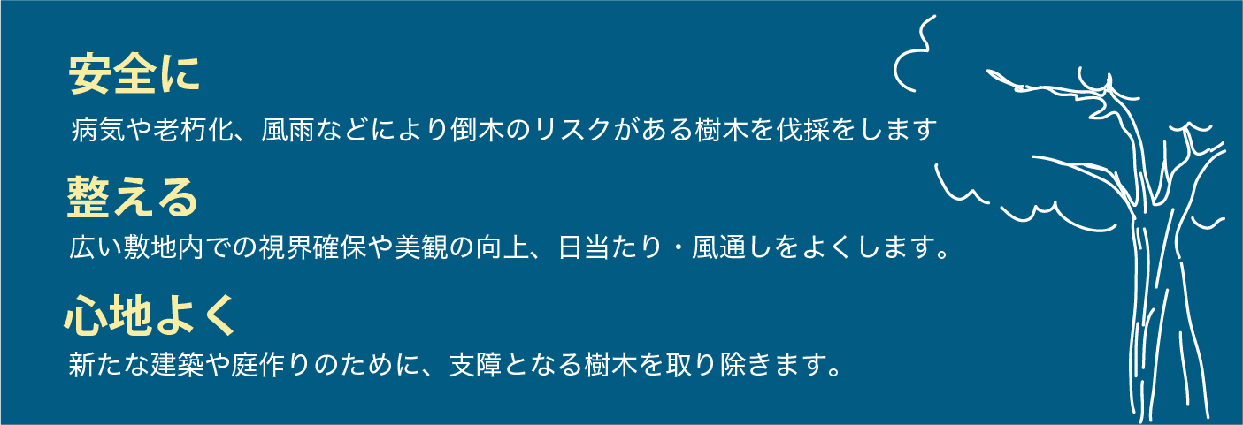 お庭や敷地の樹木に関するお悩みがありましたら、ぜひ私たちにご相談ください。