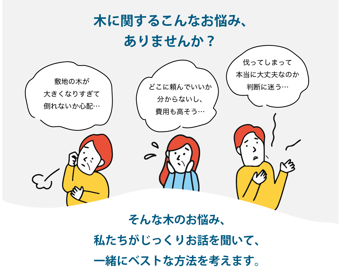 樹木に関するお悩みがありましたら、まずはお気軽にご相談ください。